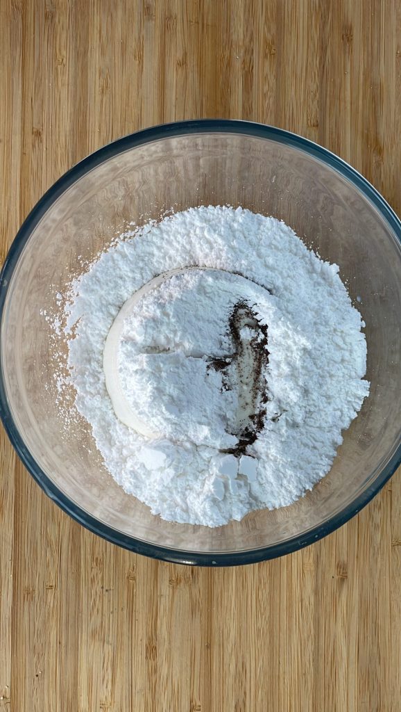 Deixe esfriar completamente no forno aberto em fenda.Enquanto isso, prepare o recheio de ricota: coloque em uma tigela a ricota, o açúcar de confeiteiro e a baunilha.