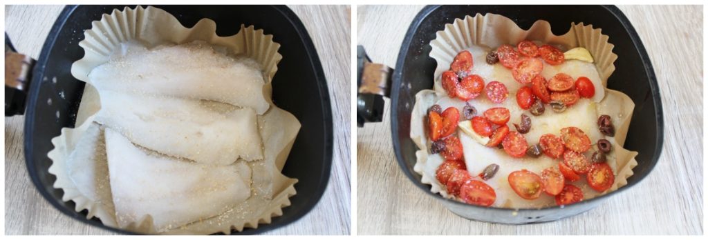 Nota: os tempos podem variar dependendo da espessura dos filés e da potência de sua airfryer.O peixe estará cozido quando ficar opaco e branco por dentro e facilmente desmanchar com um garfo.