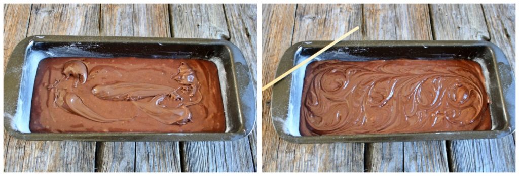 Despeje na superfície 2 – 3 colheres de Nutella (se quiser, você também pode adicioná-la na massa, além de colocar por cima) e com um palito de churrasco crie círculos.