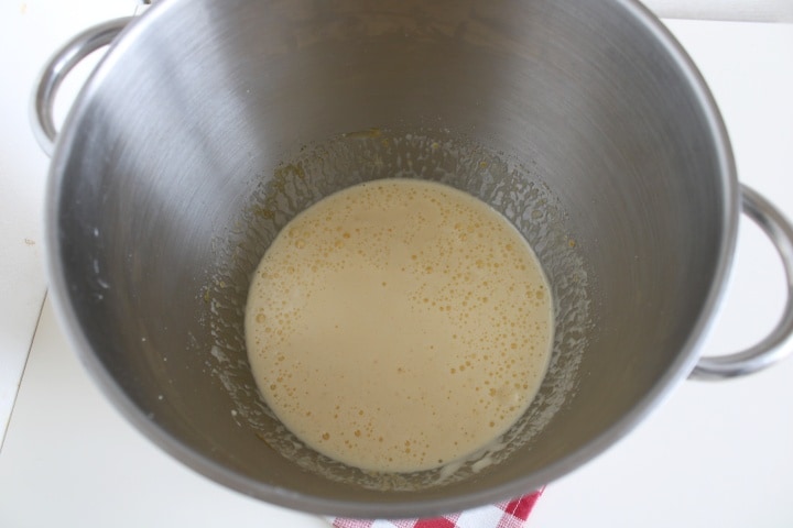Bata os ovos com o açúcar na batedeira (ou em uma tigela com batedores elétricos) até obter uma mistura clara e espumosa.