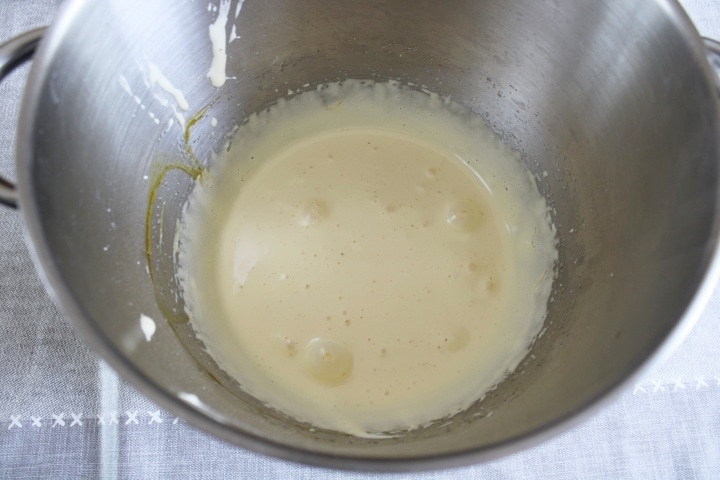 • Primeiramente, pré-aqueça o forno a 180°C, no modo estático, depois, coloque na batedeira os ovos com o açúcar e bata em velocidade máxima por cerca de 5 minutos, até obter uma mistura fofa e espumosa. Se preferir, use uma batedeira elétrica.