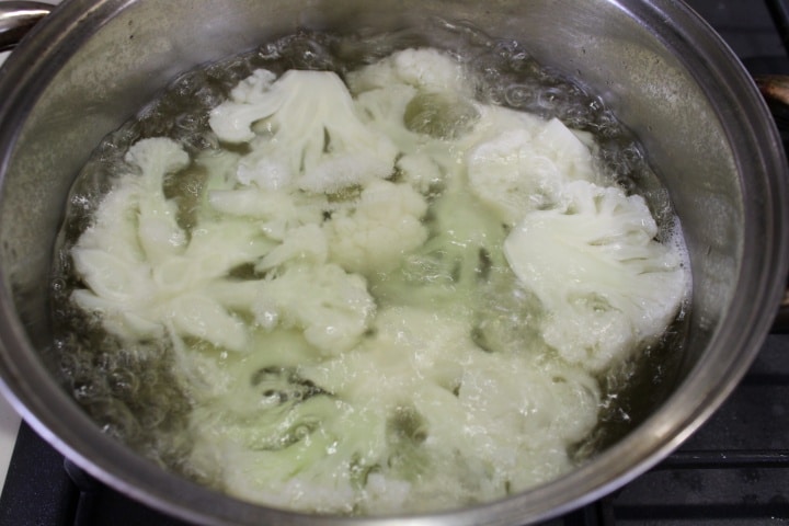 Enquanto isso, coloque uma panela com bastante água no fogo e deixe ferver. Quando a água estiver fervendo, adicione o sal e cozinhe a couve-flor por cerca de 10 minutos. Preste atenção ao cozimento, a couve-flor deve estar cozida, mas ainda firme.