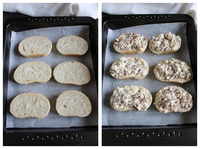 Se preferir, você pode adicionar a linguiça esfarelada crua junto com o stracchino. Dessa forma, os crostini precisam ficar um pouco mais no forno para cozinhar, mas o resultado será ótimo do mesmo jeito.