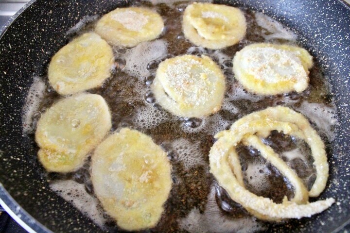 Enquanto isso, coloque para aquecer o óleo de oliva em uma panela (ou em uma panela específica para fritura com cesto de aço, ótima para fritar de forma simples e rápida), quando estiver quente, mergulhe as fatias de funcho empanadas e, à medida que estiverem prontas, coloque sobre papel absorvente para retirar o excesso de óleo.