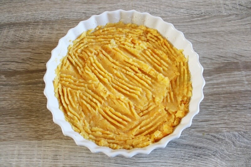 Semelhante a um gratinado, mas com a adição de abóbora para um toque de cor e doçura.