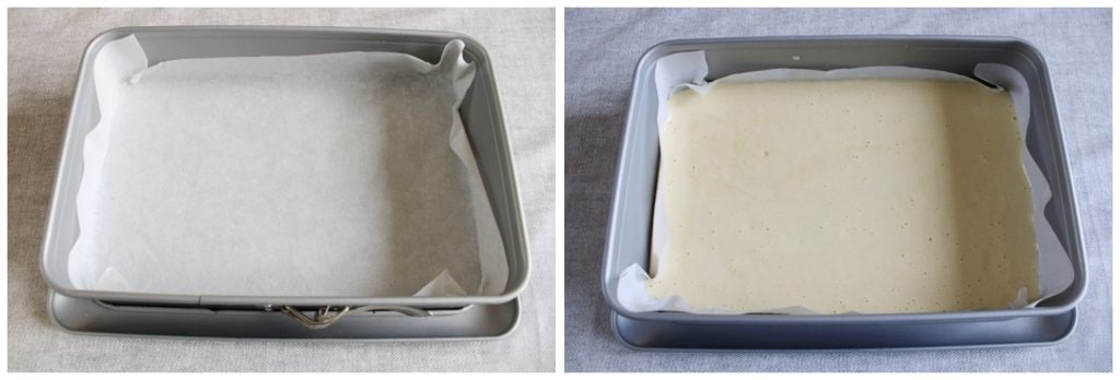 Forre uma assadeira com papel manteiga, despeje a massa e nivele bem.