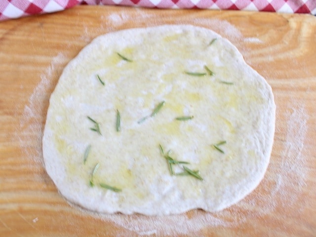 Espalhe em cada pizza azeite de oliva extravirgem (usando um pincel de cozinha), alecrim e sal grosso, e asse em forno já aquecido a 250°C, por cerca de 10 – 12 minutos.
