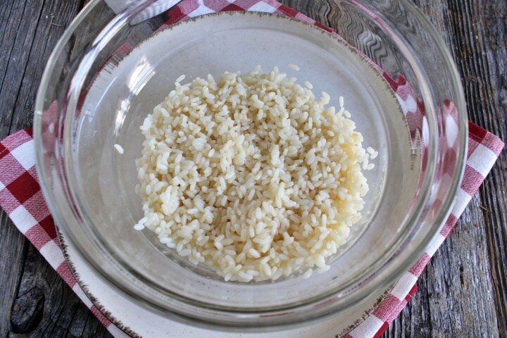Primeiro, cozinhe o arroz: coloque o arroz em uma panela pequena, cubra com água fria e leve à fervura, depois conte 10 minutos a partir do momento em que começa a ferver e desligue. Em qualquer caso, siga as instruções da embalagem, pois o tempo de cozimento pode variar.