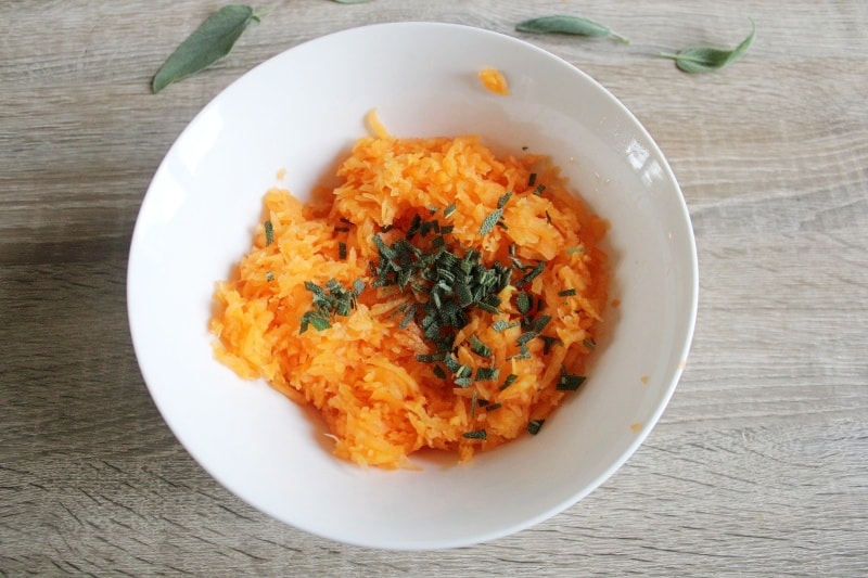 • Lave e pique finamente a sálvia e incorpore-a à abóbora com uma pitada de pimenta.