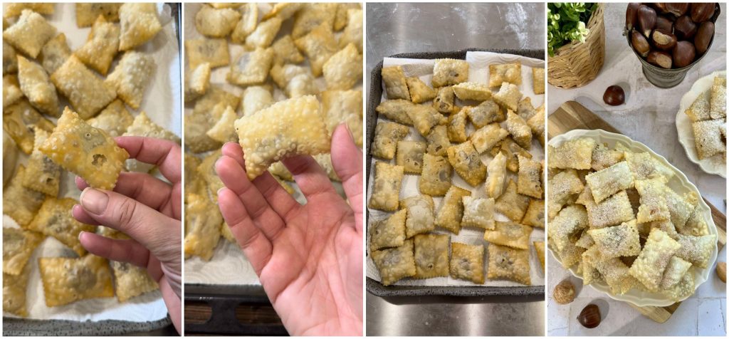 Diria que já falei o suficiente! Deixo vocês com a preparação um pouco longa e talvez também um pouco desafiadora desses doces fritos de castanha, especialidade típica de Abruzzo.