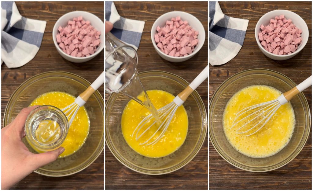 A única coisa que você precisará fazer é cortar em cubinhos tanto o presunto quanto o queijo e em menos de 10 minutos você terá a massa pronta para despejar na forma!