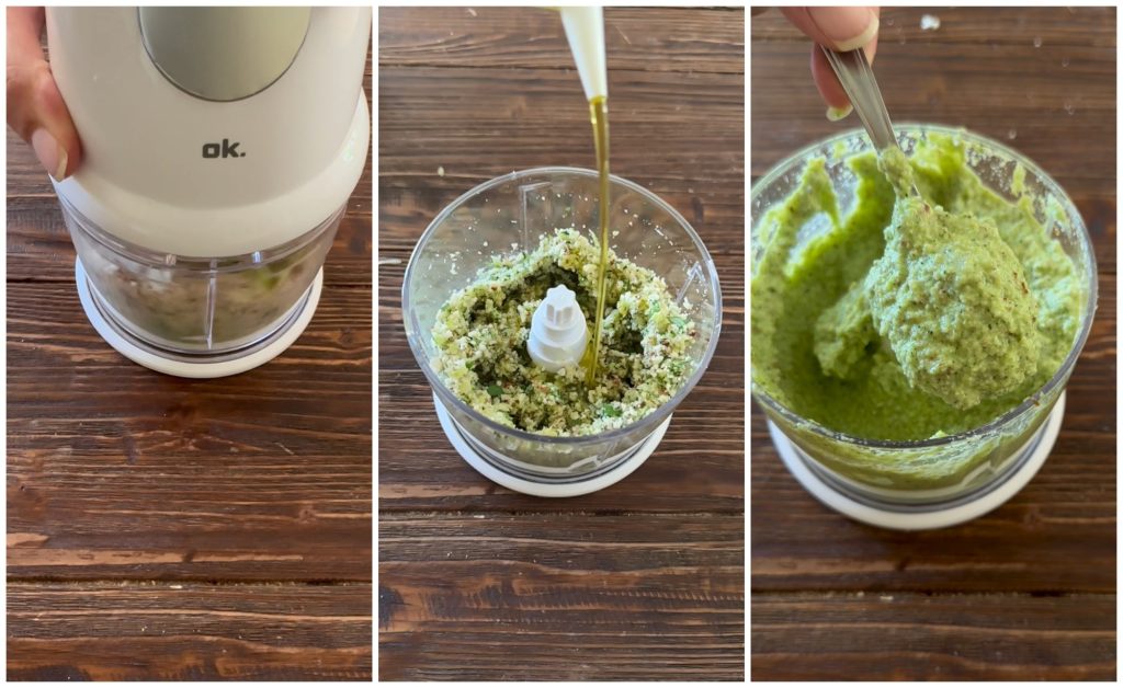 • Recomendo adicionar o pesto um pouco de cada vez porque pode não ser necessário usar tudo.