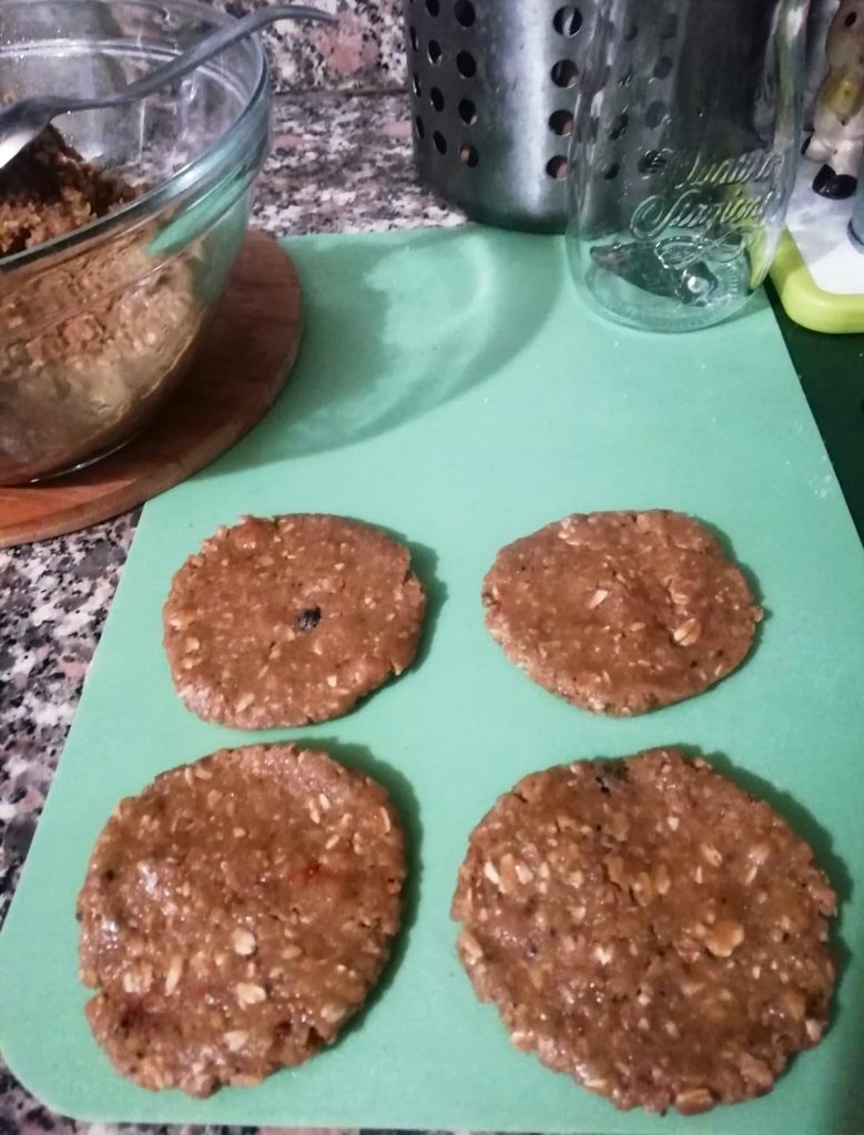 Após formar as bolinhas, achate-as na palma da mão e dê a forma redonda do biscoito.