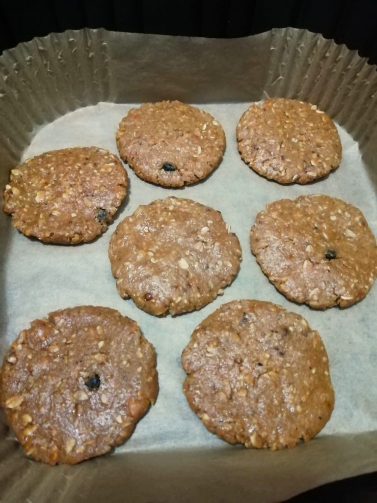 Coloque os biscoitos em cima de uma folha de papel manteiga e asse-os no forno a 170° por 10 minutos.