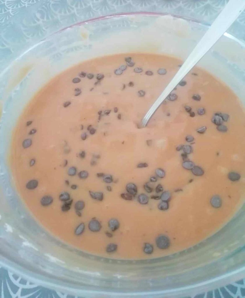 Entre outras coisas, é muito fácil de fazer e não contém leite, para os intolerantes à lactose. Um doce delicioso que dentro esconde muitas gotas de chocolate, para servir em qualquer momento do dia, desde o café da manhã até a sobremesa.