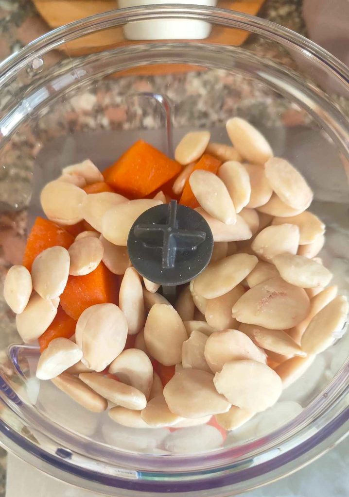 • Triture finamente, com um liquidificador, as cenouras e as amêndoas juntas.