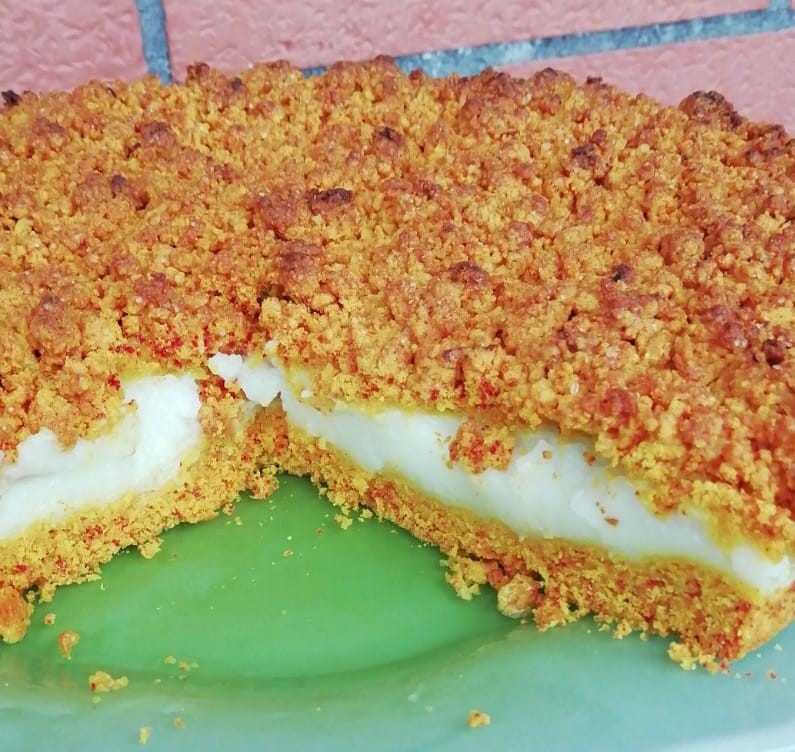 Adoro o bolo esfarelado, por muitos motivos, um deles é pela facilidade e rapidez com que se faz. A massa é justamente esfarelada e dentro desta versão tem um creme de limão muito delicado e aromático. enquanto o bolo esfarelado de coco tem uma massa de cacau e creme de coco… é de dar água na boca.