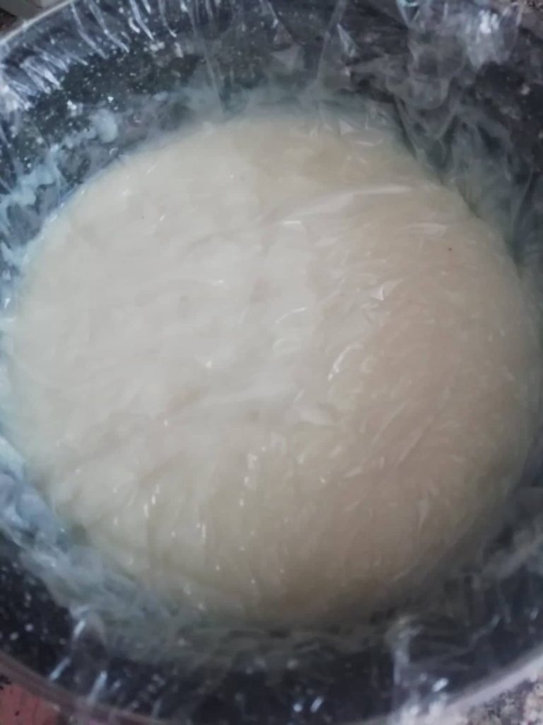 Quando estiver pronta, apague o fogo e deixe amornar com um filme plástico de alimentos colocado na superfície.
