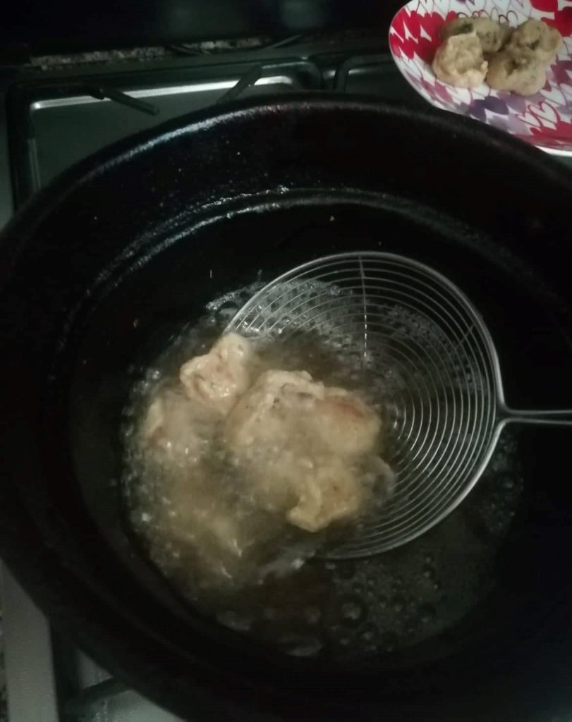 • Em uma panela para frituras, coloque o óleo e aqueça-o.