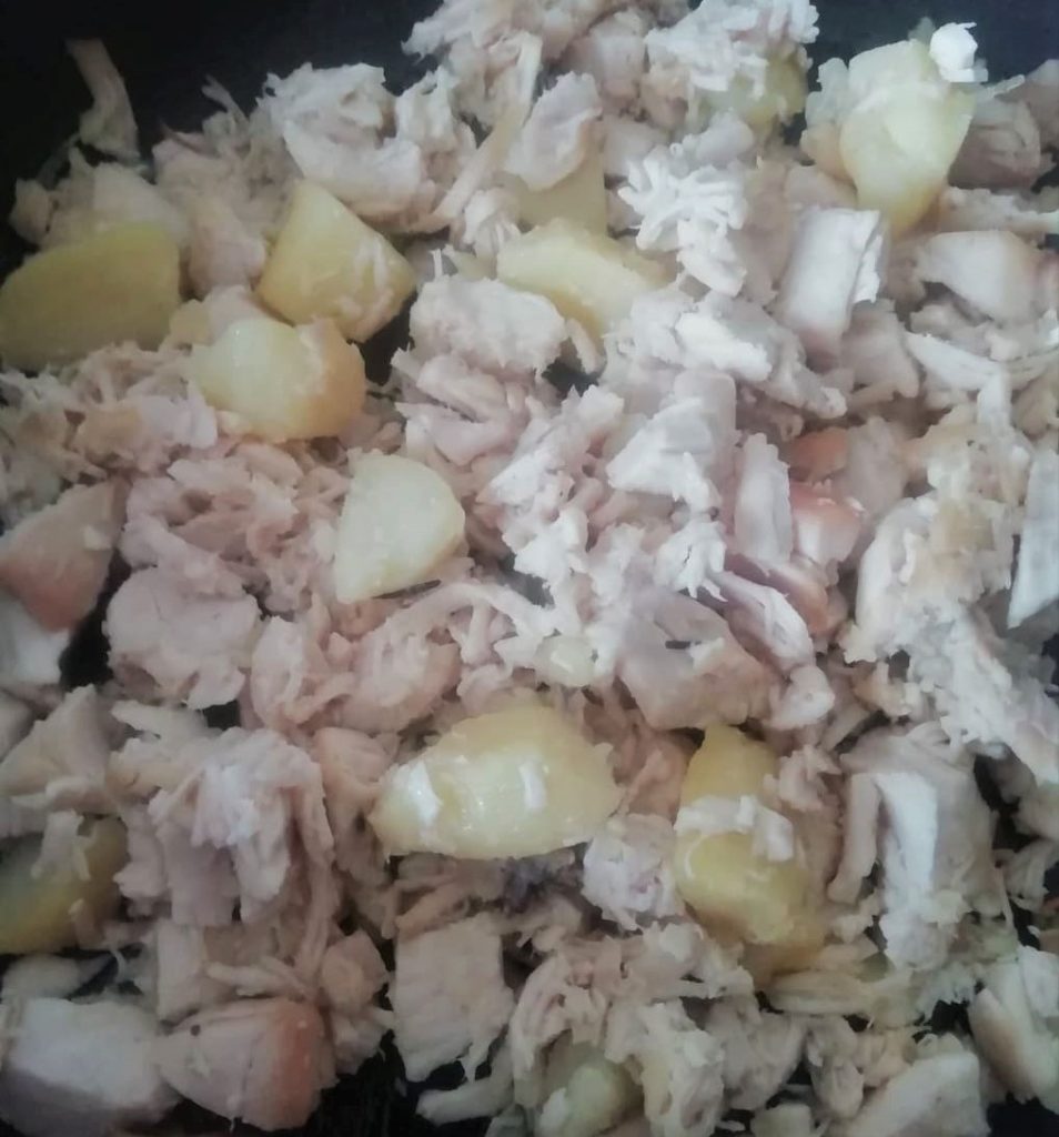- 350 g peito de frango (ou frango cozido ou coxas e sobrecoxas)