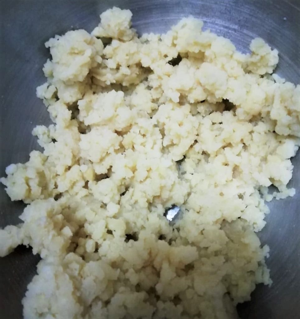 Quando estiverem cozidas, escorra-as e descasque-as. Em seguida, amasse-as e coloque-as em uma tigela.