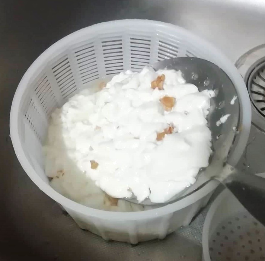 Passado esse tempo, você pode virar o queijo em um recipiente perfurado, remover delicadamente a forma e deixar escorrer mais soro.