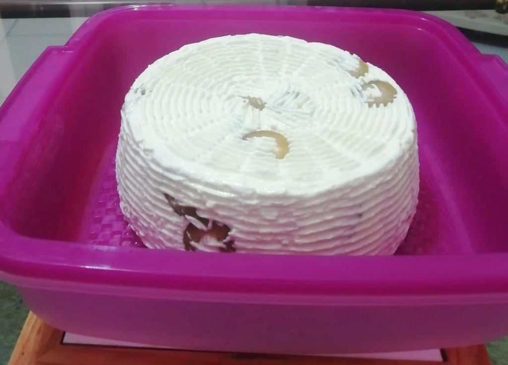 Coloque o queijo na geladeira por pelo menos 4-5 horas ou durante toda a noite, e depois sirva.