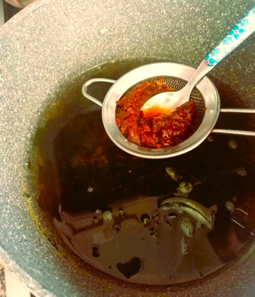 Após 3 minutos, desligue o fogo e adicione a pasta de miso na sopa.