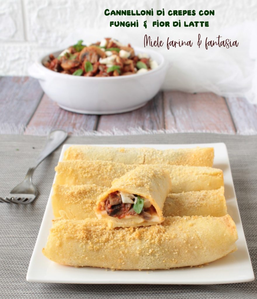 Os cannelloni de crepes recheados com cogumelos e fior di latte fazem parte dos pratos principais sem glúten e vegetarianos para preparar em ocasiões especiais ou em dias de festa. É uma preparação muito simples, cujos componentes podem ser realizados em momentos diferentes para depois serem unidos em uma receita deliciosa. Os cannelloni de crepes que eu preparei e que você pode ver na foto de capa abaixo foram feitos com farinha de grão-de-bico sem glúten, mas também deixo os links para prepará-los com um mix já pronto de farinhas sem glúten; ou com farinhas tradicionais aglutinadas, tanto na versão com ovos quanto sem (que você pode encontrar imediatamente aqui abaixo).