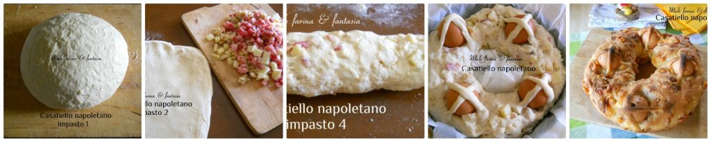 Você já experimentou o casatiello napolitano? Aquele rústico? Pois é, porque existem dois tipos de “casatiello” na tradição gastronômica campana: o salgado, do qual falarei agora, e o doce. Por casatiello napolitano entende-se um bolo fermentado rústico (preparado com fermento natural ou fermento biológico e ilustrar-lhe-ei ambos os passos) com banha, recheado com torresmo de porco, embutidos e queijos e decorado com ovos colocados crus antes da cocção. A banha é um dos ingredientes fundamentais do casatiello, pois em quantidades adequadas torna a massa macia, fragrante, caso contrário o casatiello, na minha opinião, se torna gorduroso. Pessoalmente, não consigo comê-lo, mas cada família tem sua versão, com todas as variações do caso e esta é a minha. Prepara-se para a Páscoa, mas em minha casa preparo frequentemente, porque é uma ótima solução em buffets, jantares de sábado à noite ou piqueniques de primavera e verão. A forma típica a ser usada é aquela para bolos com buraco no meio, mas se você não tem este tipo de forma, dentro do procedimento sugiro um truque simples para obter a forma clássica. O casatiello tem uma fermentação muito longa, tanto com fermento biológico quanto com fermento natural, que lhe confere uma longa duração e aquela maciez que, de outra forma, não teria (este é um dos motivos pelos quais adiciono uma quantidade menor de banha em comparação com a receita mais antiga ou com as que geralmente circulam na internet, pois a longa fermentação confere ainda mais maciez), por isso recomendo começar a prepará-lo no dia anterior ao consumo. Eu, de fato, começo a prepará-lo na primeira tarde da Sexta-feira Santa, para poder assá-lo na manhã do Sábado Santo e comê-lo no almoço.
