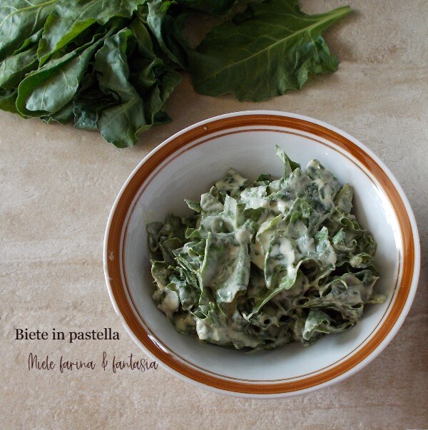 Misturamos todos os ingredientes até obter uma massa densa e fluida, mas não excessivamente líquida porque não deve escorrer das acelgas. A massa deve unir as folhas picadas e torná-las crocantes ao final do cozimento.