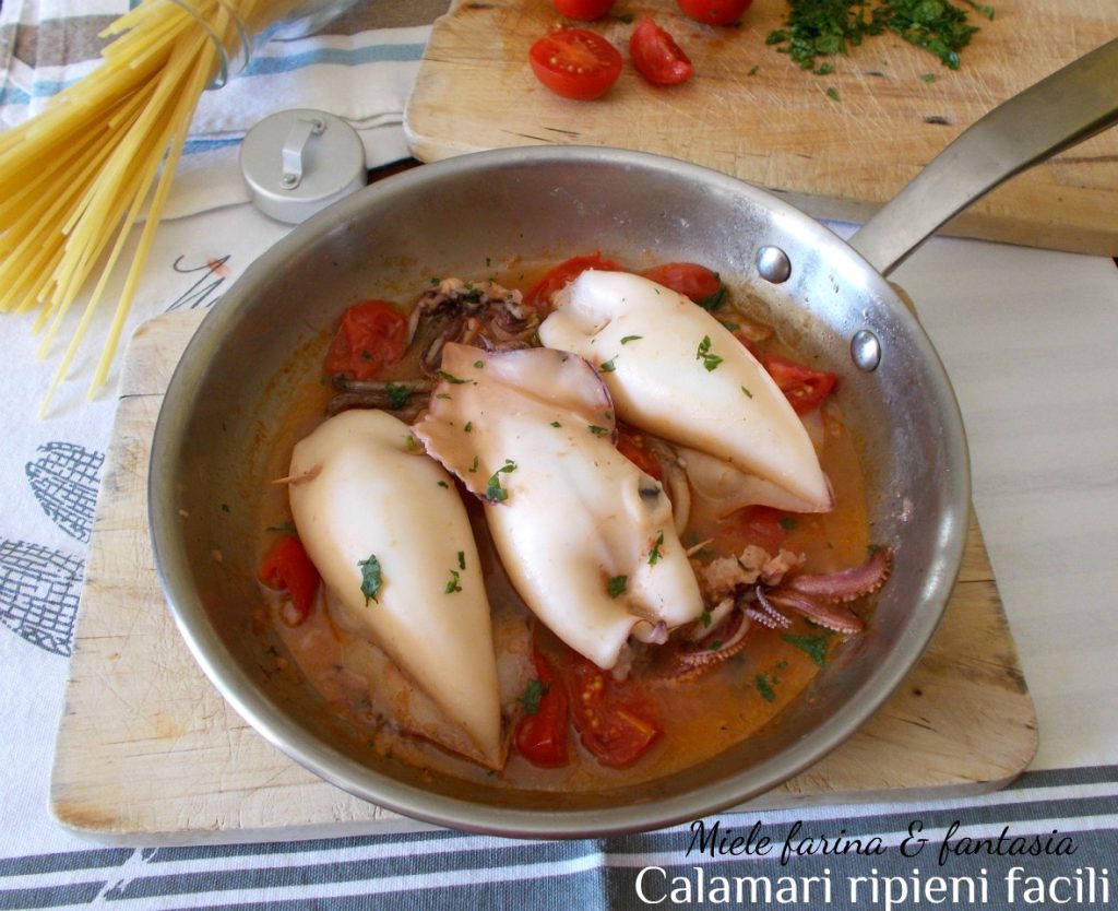 Gostaria de propor uma receita muito fácil: lulas recheadas na frigideira. Este é apenas um dos muitos jeitos que gosto de rechear lulas. É um segundo prato de peixe que fica pronto em pouco mais de meia hora. Com o molhinho, delicioso e perfumado, podemos também temperar a massa; assim, em pouquíssimo tempo, teremos realizado um prato saboroso completo de primeiro e segundo.