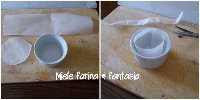 No fundo de cada forminha coloque um círculo de papel manteiga (um pouco maior que o fundo).