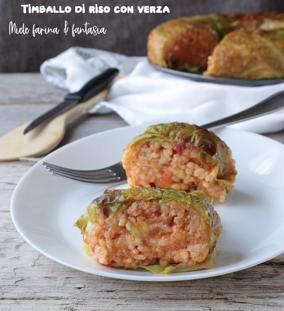 Hoje eu proponho uma receita feita com sobras do almoço de domingo, ou seja, arroz cozido com o qual eu havia feito alguns bolinhos de arroz napolitanos, ragù napolitano, repolho que estava abandonado na geladeira e bechamel sem glúten. O prato resultante, um timbale de arroz com repolho, é incrível, delicioso, sem glúten, perfeito também como uma ideia para propor no almoço ou jantar durante a semana, como lanche de trabalho ou para um piquenique. Como todas as minhas receitas, esta também é uma ideia personalizável de acordo com os gostos e necessidades; ou pode ser vista como uma inspiração para reaproveitar sobras de forma saborosa, sem muito esforço e desperdício. O timbale de arroz e repolho pode ser preparado também do zero, com molho de tomate (mais rápido que o ragù) feito na hora; pode-se decidir se adiciona ou não o bechamel e ainda enriquecer o timbale de arroz e repolho com embutidos, cogumelos, entre outros.