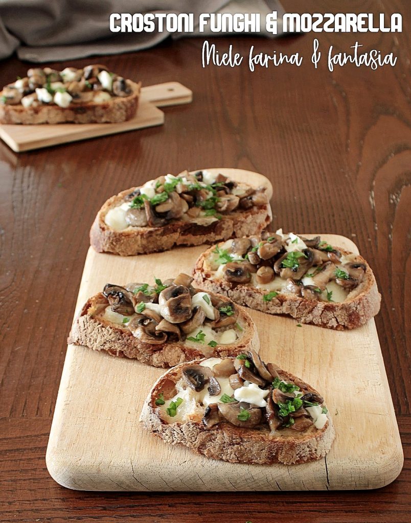 As torradas de forno com cogumelos e mussarela podem ser preparadas para um almoço rápido, uma festa, um jantar entre amigos, para o jantar de sábado à noite, um passeio, mas também para aproveitar de maneira saborosa e criativa queijo ou pão amanhecido. Fazer as torradas é muito fácil e pode-se personalizá-las com ingredientes sem glúten e sem lactose. Podemos usar e adicionar o que mais gostamos e que, talvez, já tenhamos em casa. Usei cogumelos champignon e mussarela do dia anterior, portanto, um pouco mais seca. Reduzindo o tamanho das fatias de pão, podemos criar deliciosos petiscos finger food para um aperitivo ou como entrada.
