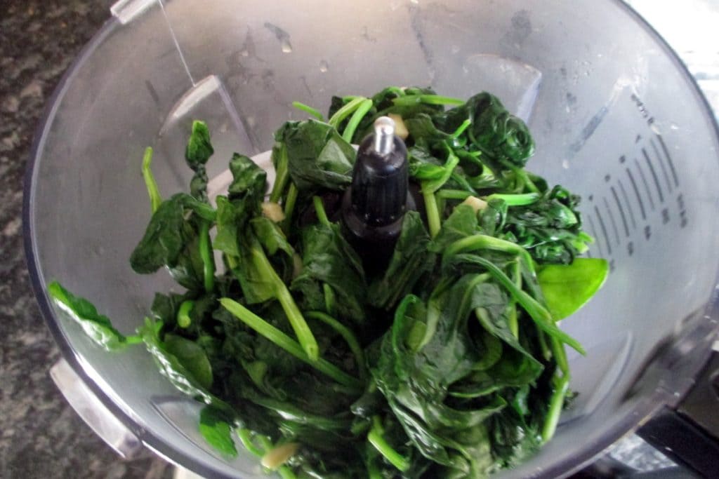 • Coloque no copo do minipimer os espinafres que você apertou bem ao retirá-los da panela.