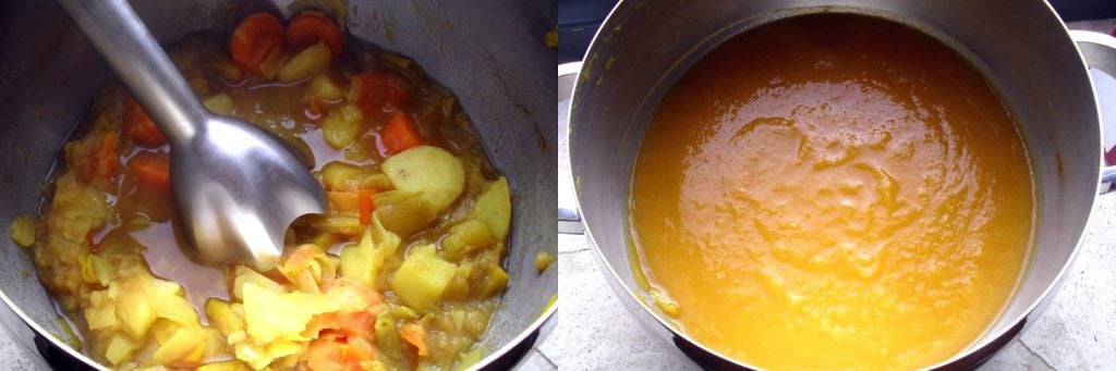 Sem falar nas especiarias: não são obrigatórias, essa sopa oferecerá seus benefícios mesmo sem as especiarias indianas que usei ou apenas com algumas. Mas a cúrcuma é bem conhecida por melhorar o funcionamento do estômago e intestino e ajudar na eliminação do excesso de gordura. Enfim, esse é um mix de ingredientes perfeitos para a dieta, especialmente após se exagerar durante as festas, mas considerando o quão delicioso o resultado é… bem, não dá para chamar de dieta!
