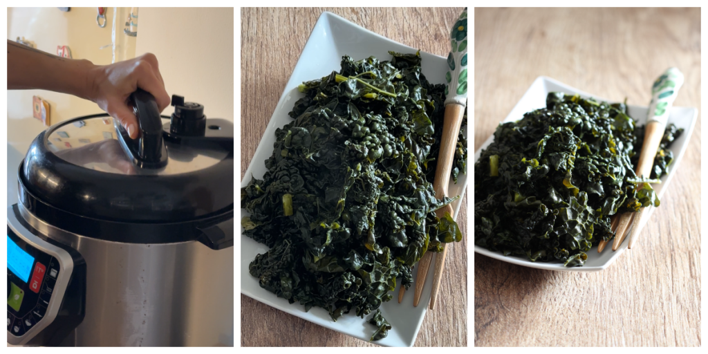 Couve negra com instant pot, um jeito rápido de cozinhar grandes quantidades de couve negra. Protagonista da ribollita com instant pot, a couve negra é um dos vegetais mais difíceis de cozinhar, tanto pelo seu volume quanto pela baixa quantidade de água que contém. Assim como as batatas cozidas na instant pot e os couve-de-bruxelas na multicooker, a couve negra cozida na multicooker também é rápida e prática de fazer.