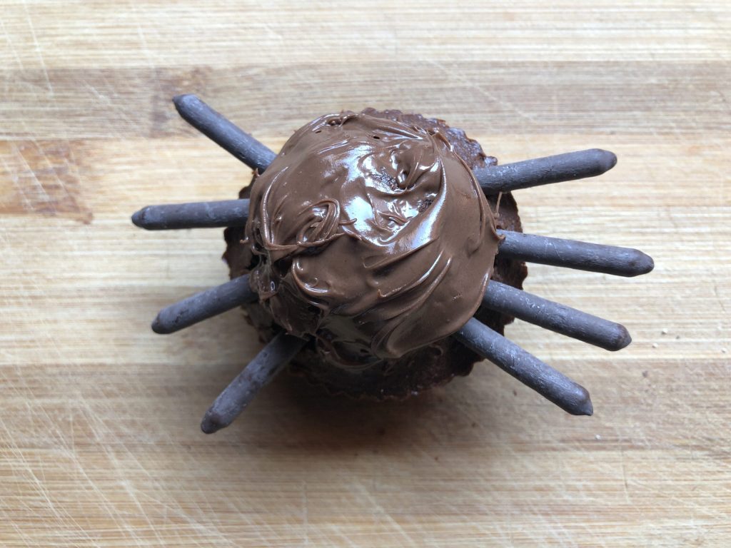 • Agora insira os palitinhos no muffin: quatro de cada lado.