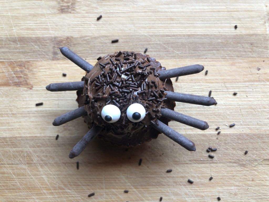 Acho que esta é a única vez que uma aranha me parece fofa. O que posso dizer? Se você está procurando uma ideia simples e divertida para tornar sua festa de Halloween ainda mais doce (e um pouco assustadora), recomendo considerar essas pequenas aranhas de chocolate. Elas são feitas em poucos passos e conquistam a todos, grandes e pequenos. Usei uns deliciosos muffins de chocolate como corpo das minhas aranhinhas, depois coloquei oito palitinhos de chocolate para criar as perninhas. Eu os cobri com aquele maravilhoso creme de avelã que todos amamos e salpiquei granulado de chocolate para criar o efeito “peludo”. Por fim, dois olhinhos de açúcar os transformaram em doces criaturas de arrepiar (muito fofas, porém, para assustar de verdade!). Perfeitos para um buffet de Halloween, uma festa de aniversário, um lanche temático ou até mesmo para uma tarde divertida na cozinha com as crianças, talvez quando estiver chovendo lá fora. Vamos lá… venham ler a receita!