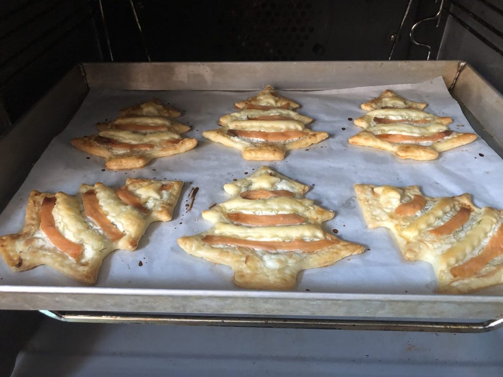 Asse as árvores de folhado com salmão em forno estático pré-aquecido a 180° por 18/20 minutos. Retire do forno e deixe esfriar ligeiramente antes de servir. Aproveite! Paola