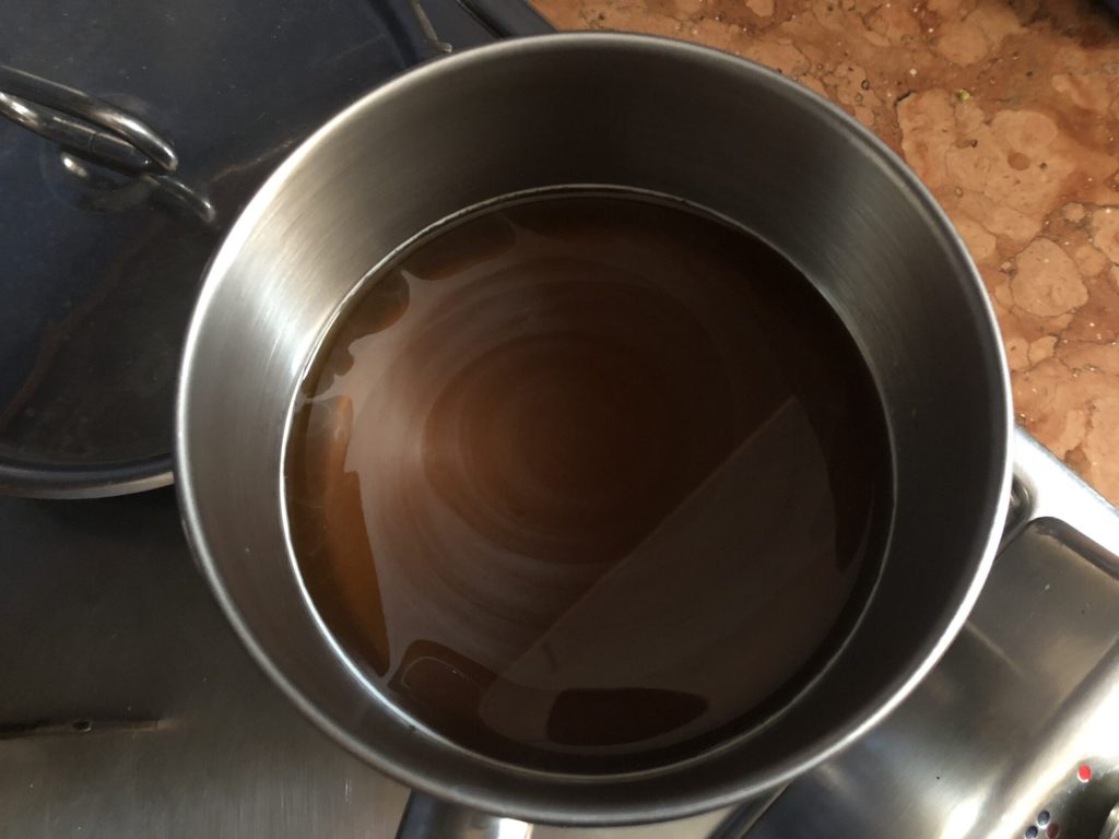 Em uma panela pequena, coloque o açúcar mascavo com 250 ml de água retirados do total.