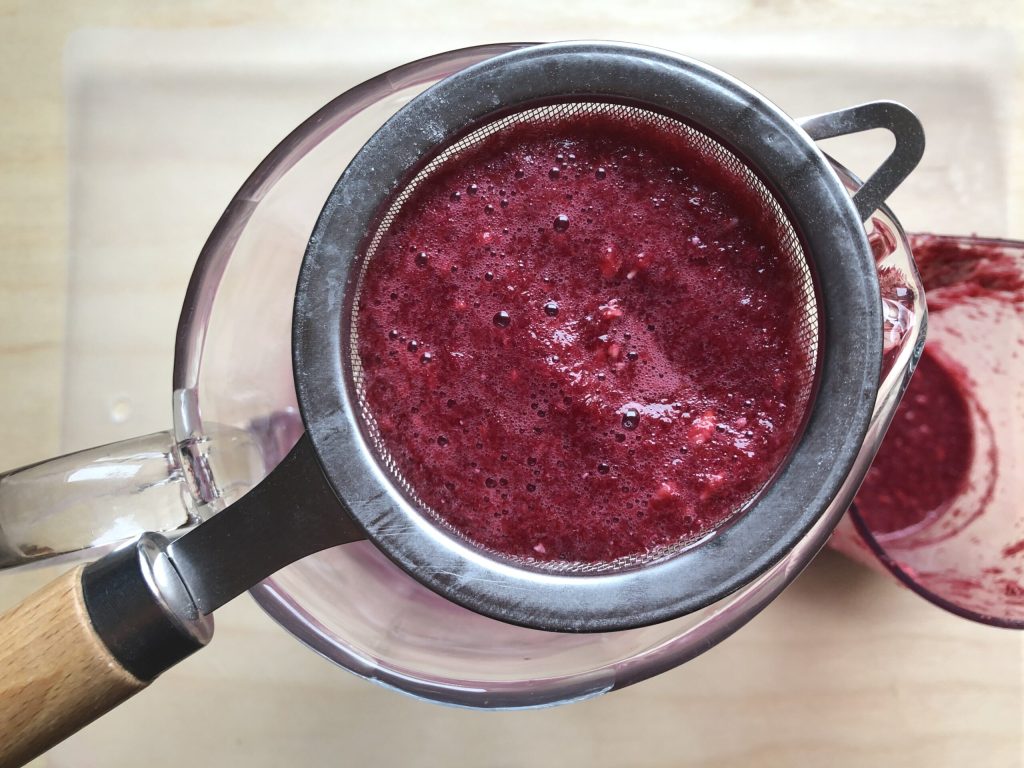 Em seguida, com uma peneira de malha fina, coe o suco obtido diretamente em uma jarra.