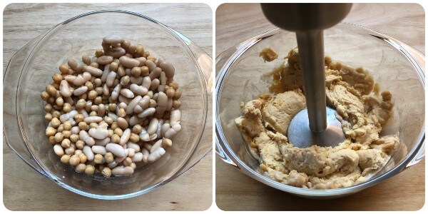 Depois, transfira-os para uma tigela e bata com um mixer de imersão. Obterá uma mistura densa e pastosa. Cubra e coloque na geladeira por pelo menos meia hora.