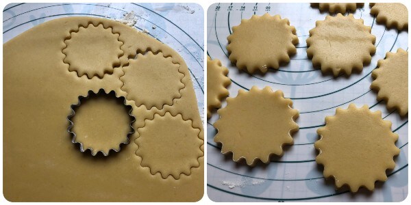 • Agora corte círculos com um cortador ondulado de diâmetro de 9 cm. Elimine as sobras de massa e reserve-as, pois precisarão ser trabalhadas novamente até o fim. Se você não tiver este cortador e deseja comprá-lo, pode encontrá-lo online clicando AQUI.