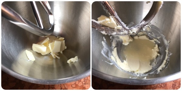 • Coloque na tigela da batedeira planetária a manteiga macia em pedaços e bata com a pá K até obter um creme.