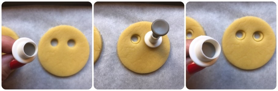Em seguida, corte os olhos com um cortador redondo pequeno e sobreponha com um segundo cortador redondo um pouco maior.