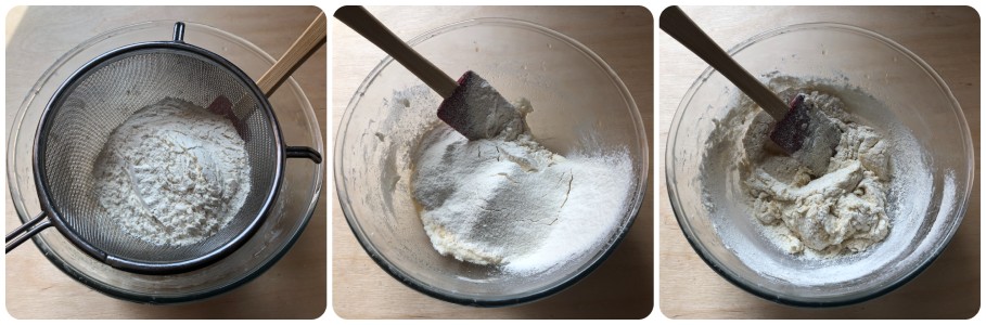 Neste ponto, incorpore gradualmente a farinha peneirada junto com o fermento através de uma peneira de malha fina.