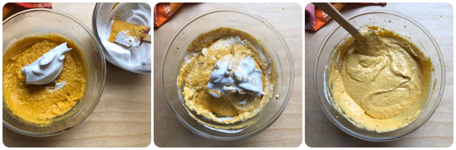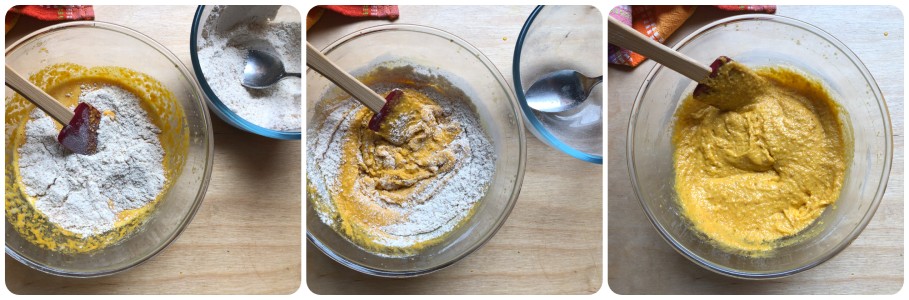 Neste ponto, adicionar os ingredientes secos em várias etapas incorporando-os com uma espátula.
