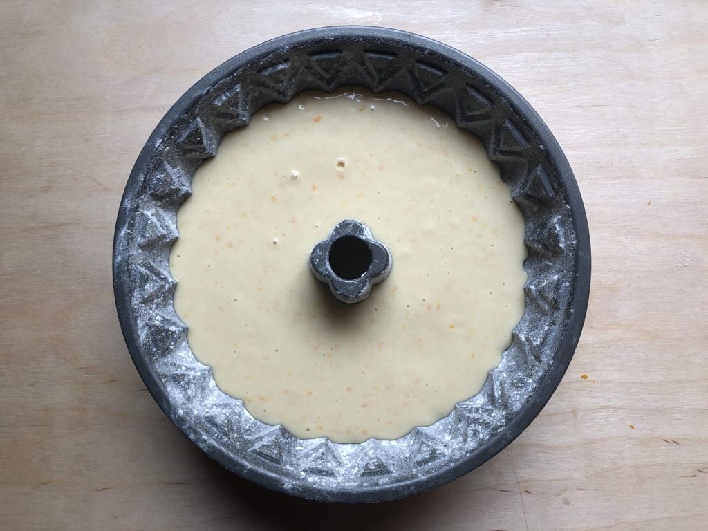 Eu o chamei de bolo de água e laranja porque é um delicado bolo de aro feito com água e suco de laranja. Não contém manteiga, nem leite e nem ovos, e tem uma maciez incrível. Não é necessário nem mesmo batedores elétricos porque tudo se mistura em uma tigela com um pequeno batedor manual. Uma sobremesa que se prepara em poucos passos, deliciosa e perfeita para o café da manhã e o lanche.